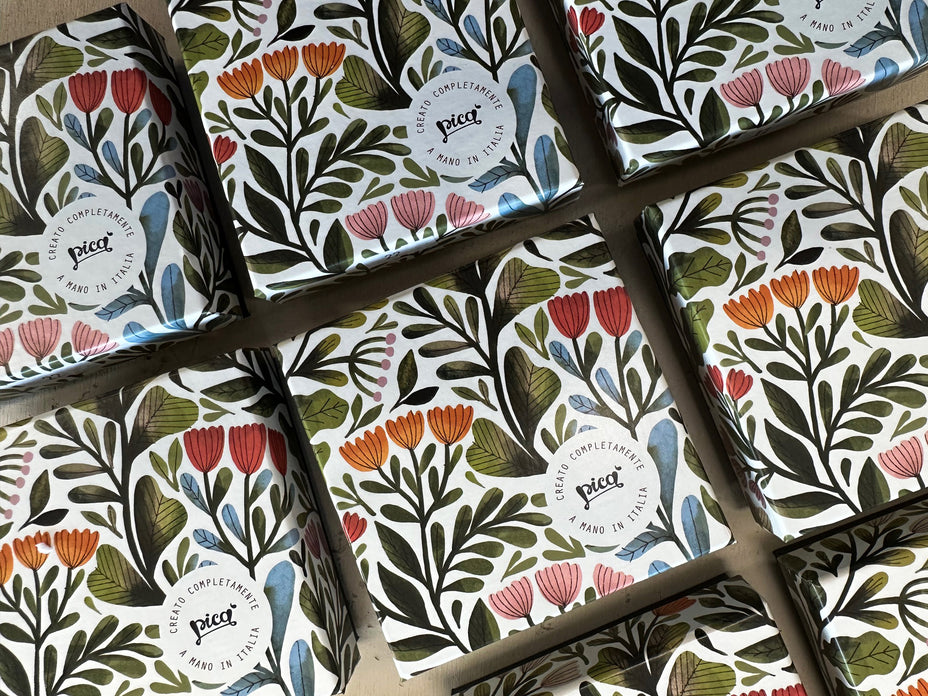 Abbinate ci sono le Collane/spilla. Usate come collana con il loro cordino in pura seta lungo un metro si possono mettere sia lunghe che doppie a girocollo, con un fiocchetto sul lato per esempio. Usate invece come spilla danno un tocco di colore ad un cappotto, a un maglione o a una sciarpa. La lunghezza totale della spilla è di 9,5cm.
